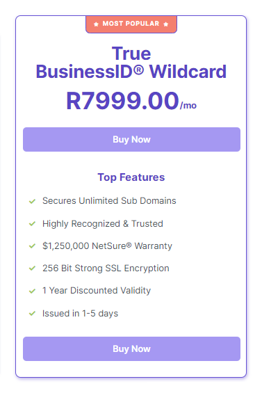 If your company requires a high quality organisational SSL Certificate, in order to secure multiple sub domains, domains.co.za provides you with the perfect solution which includes the most advanced Site Seal available.