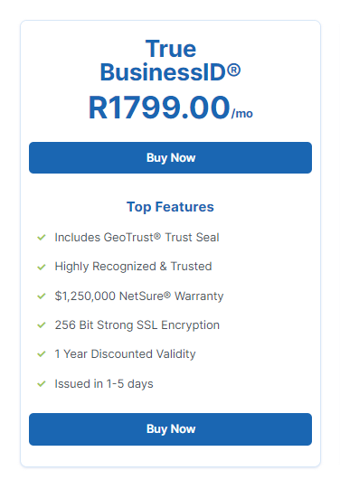 True BusinessID® ensures that your company name is shown within the True BusinessID® website seal and the SSL Certificate itself, instilling further confidence to your visitors that your website and company is legitimate and of good standing.